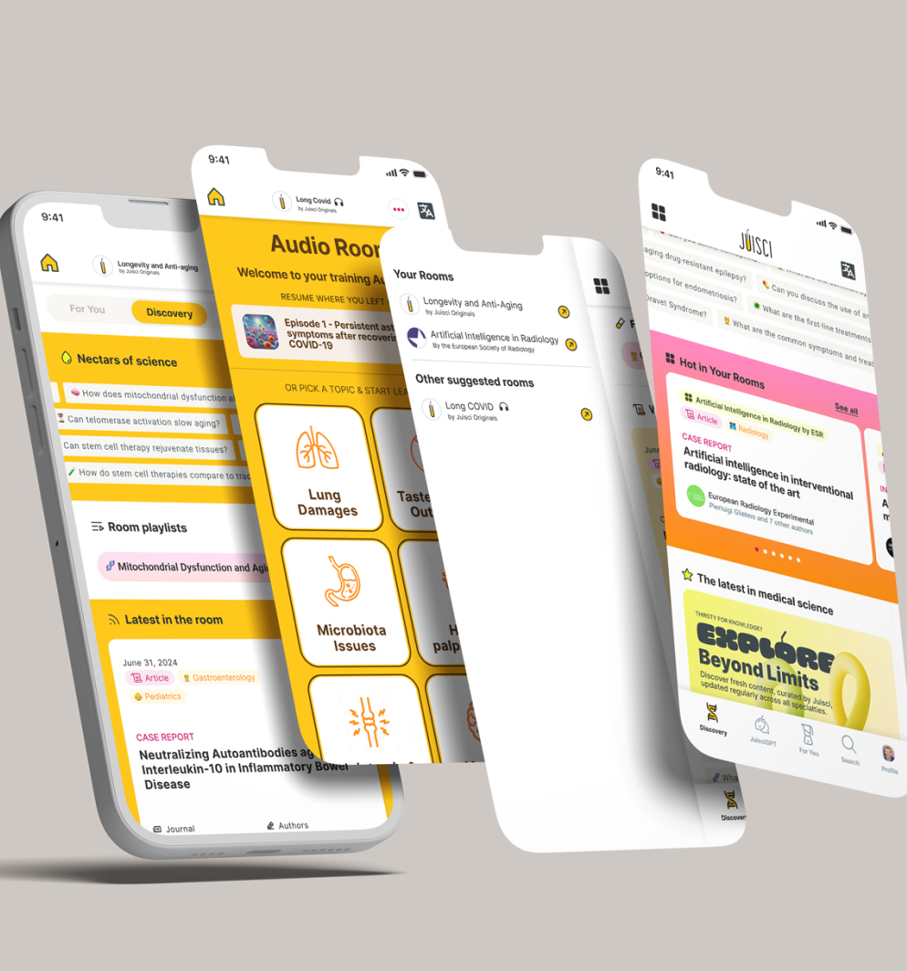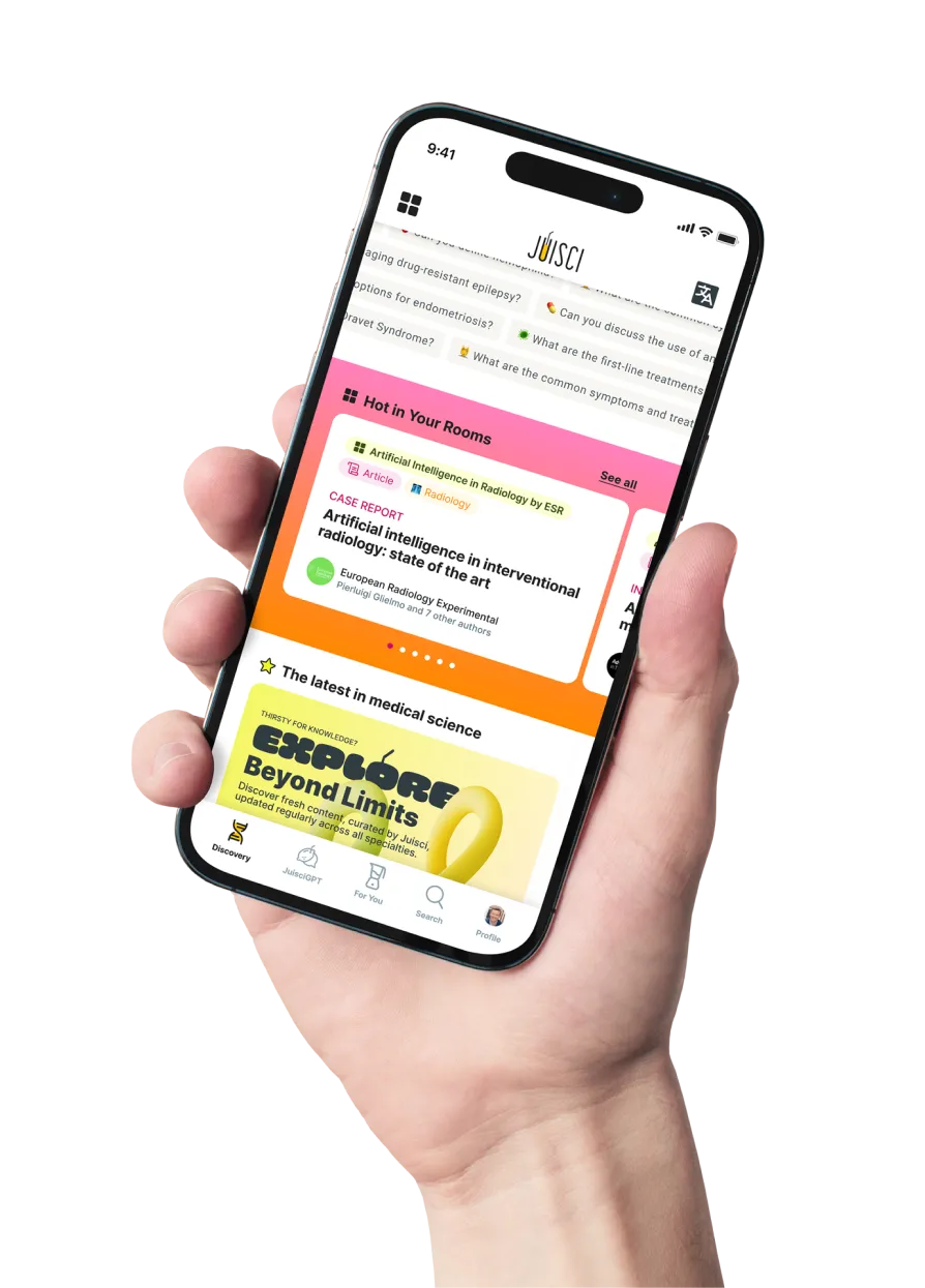 Our app is free for end-users to support our mission of democratizing and accelerating access to medical information for the entire healthcare community. We take pride in our independence, ensuring that you will never receive commercial ads on the app.For organizations, we offer Juisci Workspace, a commercial service that automates scientific literature monitoring and creates dedicated spaces to highlight educational content relevant to specific medical expertise. Learn more here.