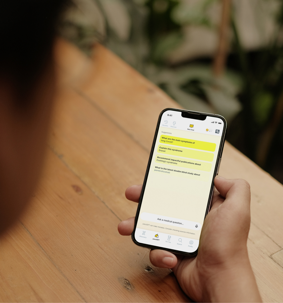 Interact with JuisciGPT, the first ever GPT trained exclusively on top tier medical literature, to quickly receive source-backed answers.