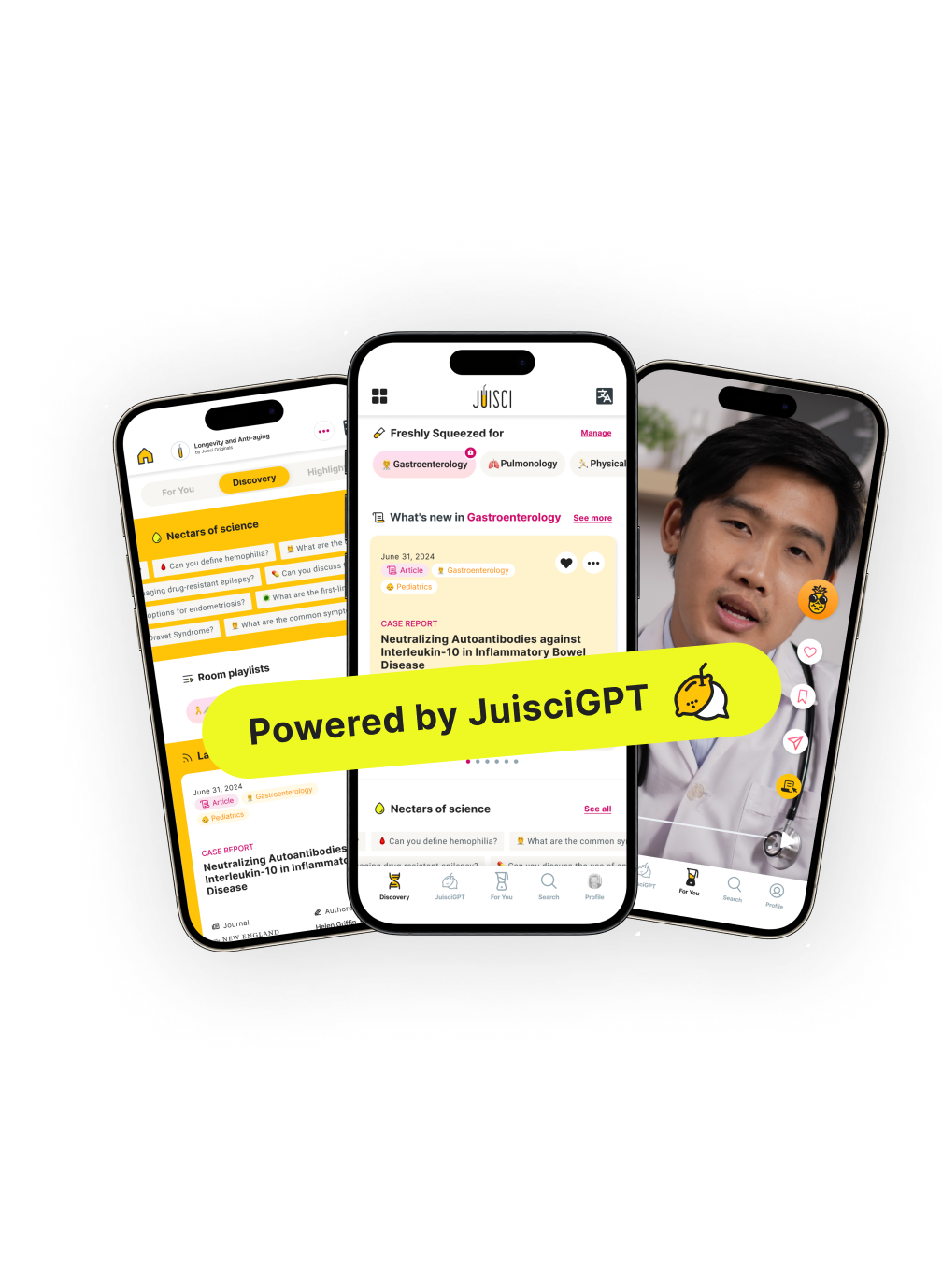 Juisci uses AI to automatically curate and summarize the latest medical publications and provide you the essentials in engaging formats like digests, videos, and podcasts.
